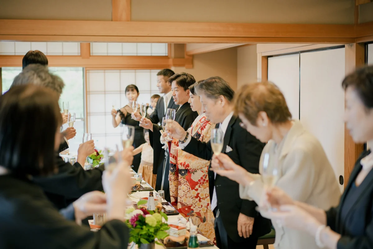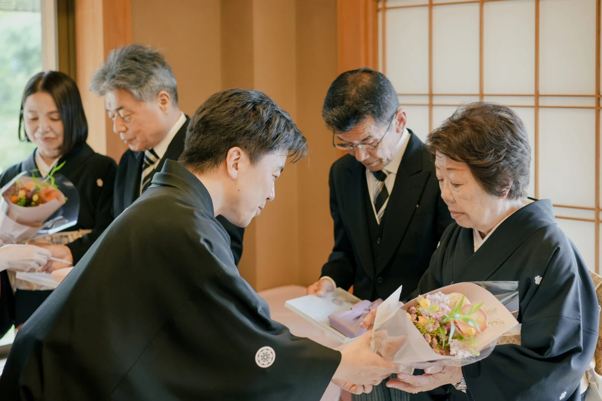 ご会食の結びは感謝の気持ちをこめて親御様に花束を贈呈